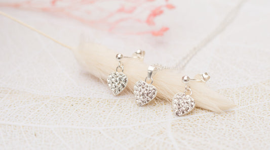 Setje Ketting & Oorbelletjes Hartje Kristal - 925 Sterling Zilver