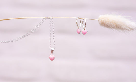 Setje Ketting & Oorbelletjes Roze Hartje - 925 Sterling Zilver