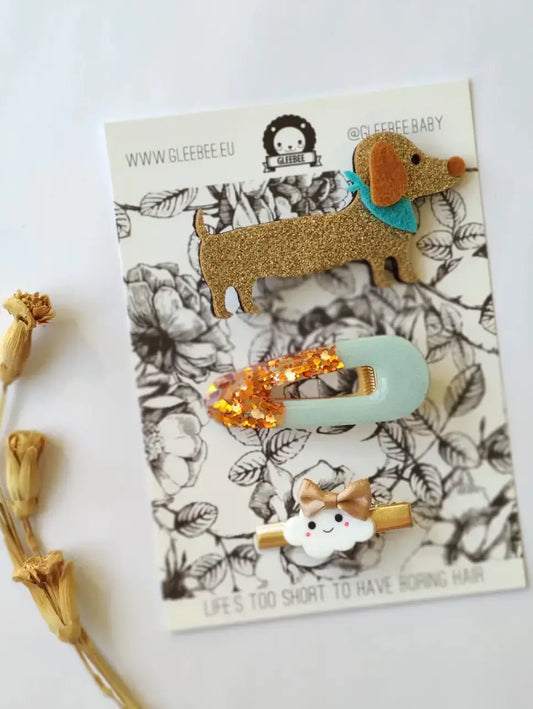 Haarspeldjes 'Doggie Blue' - Gleebee